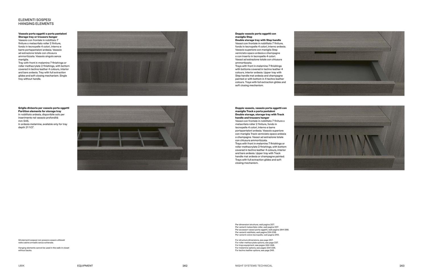 Per accessori vassoi porta oggetti, vedi pagine 264-268.