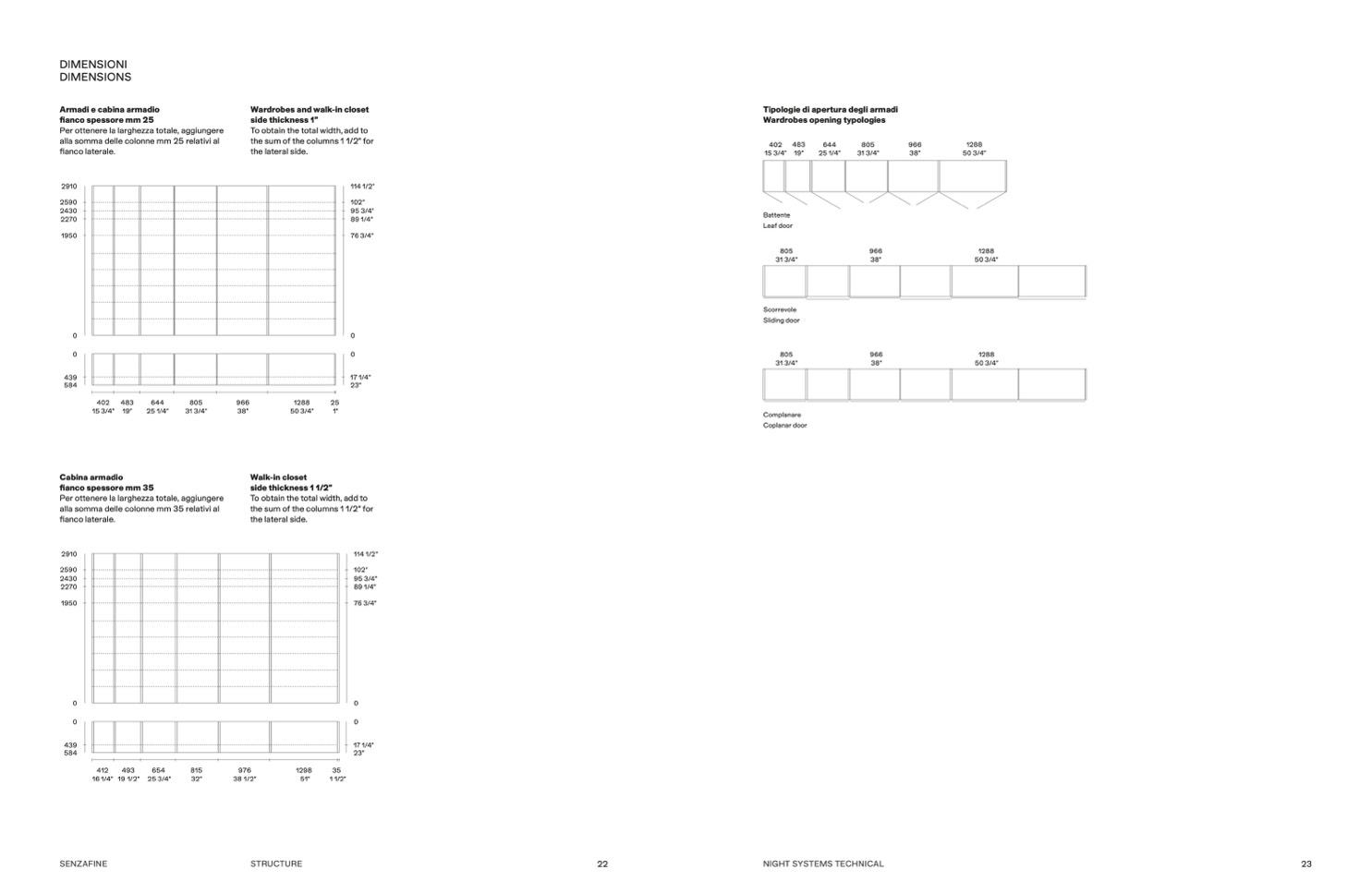 Wardrobes opening typologies
