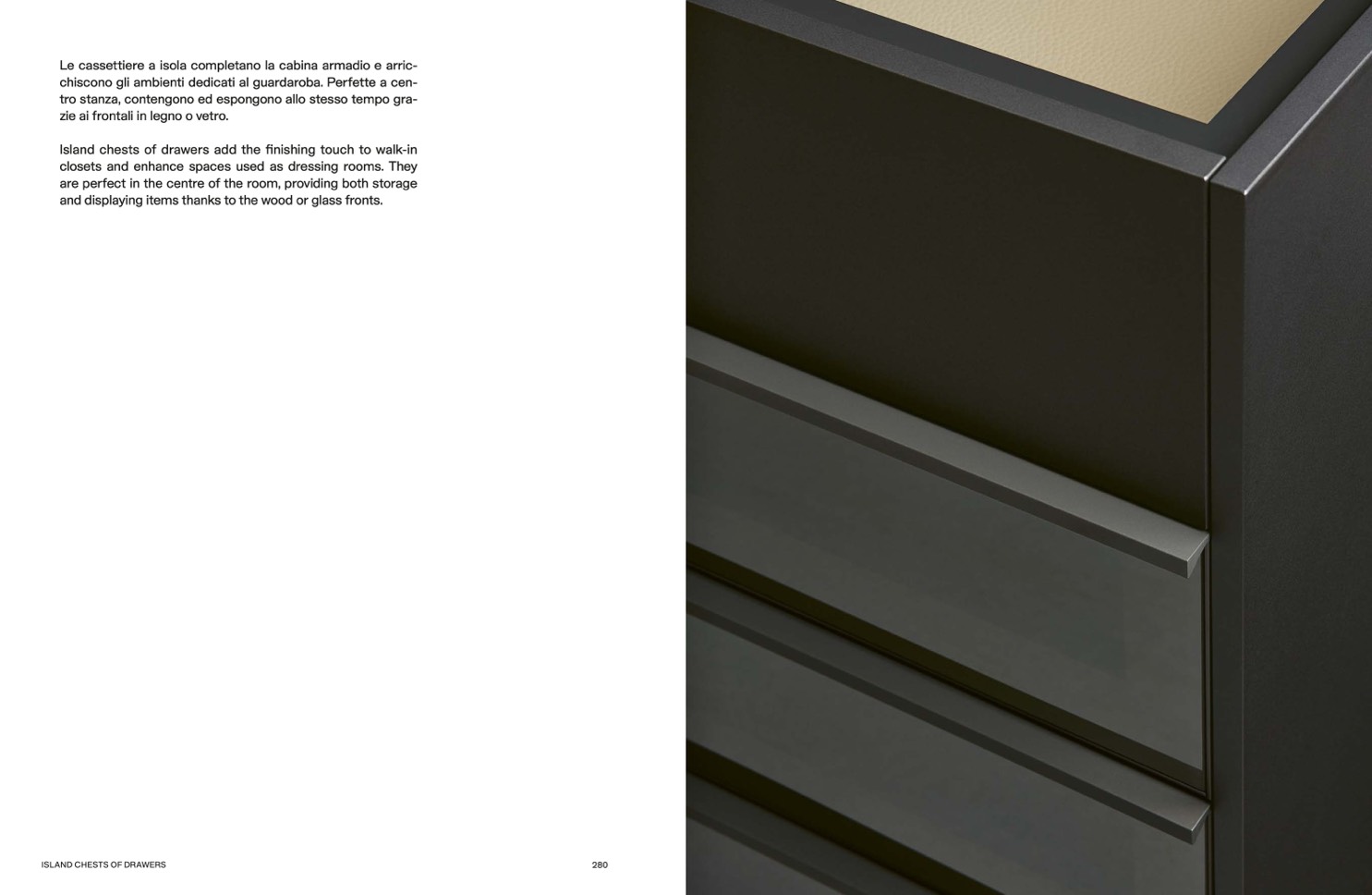 Le cassettiere a isola completano la cabina armadio e arric-