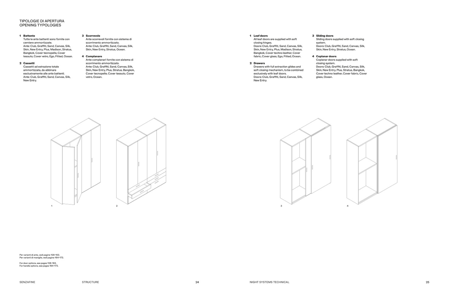 Per varianti di ante, vedi pagine 128-163.