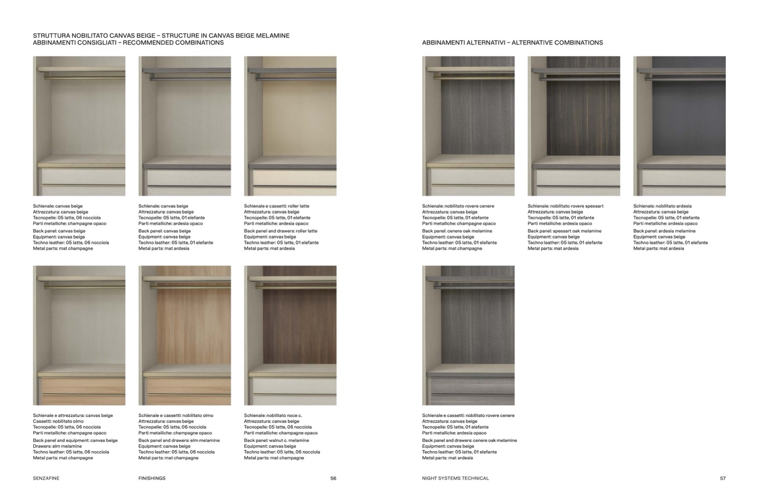 Back panel and drawers: cenere oak melamine