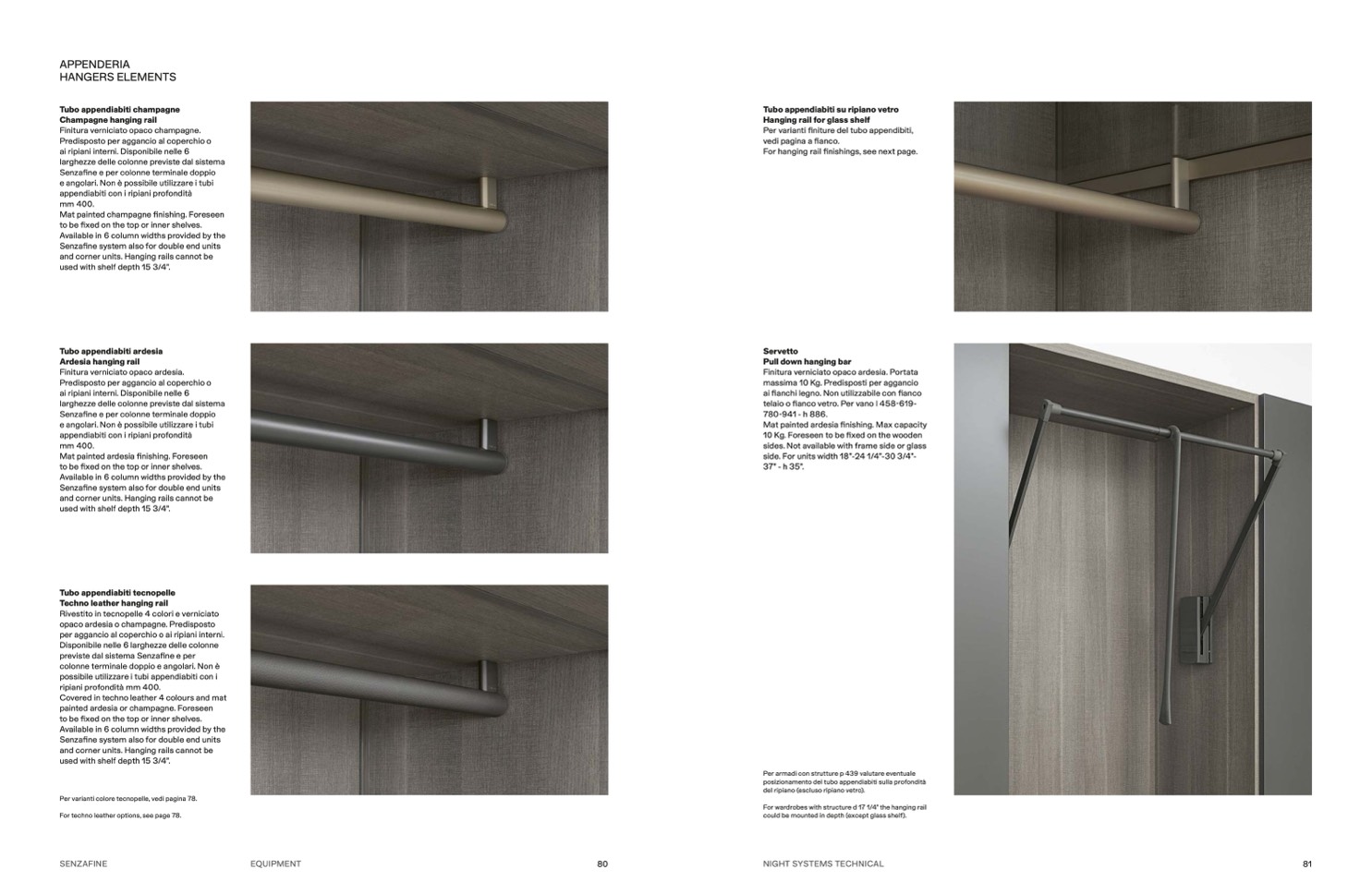 For hanging rail finishings, see next page.