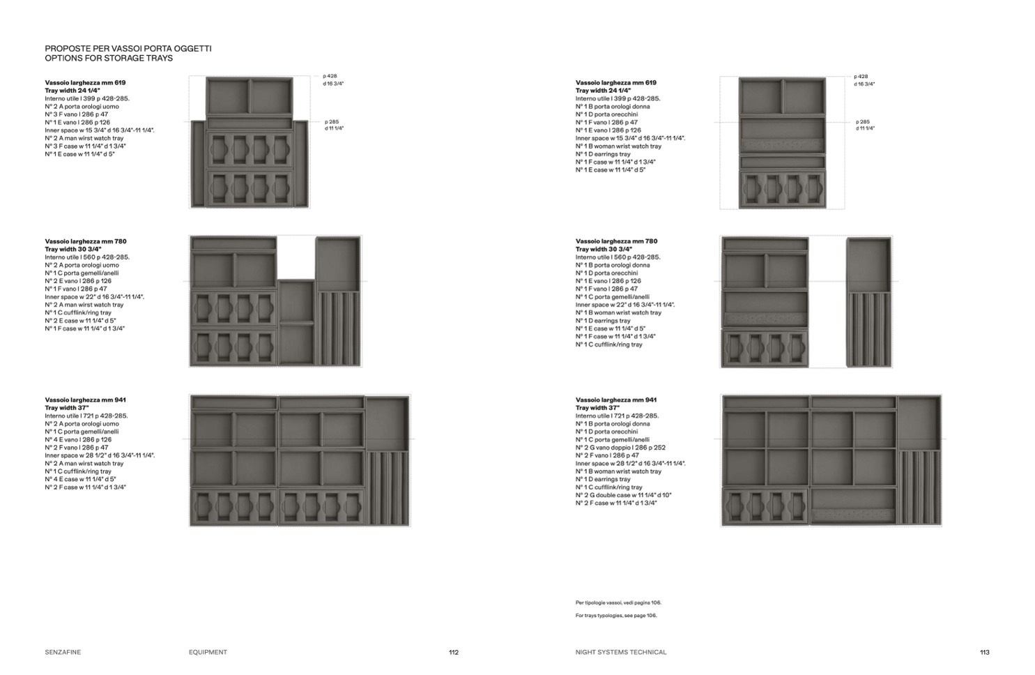 For trays typologies, see page 106.