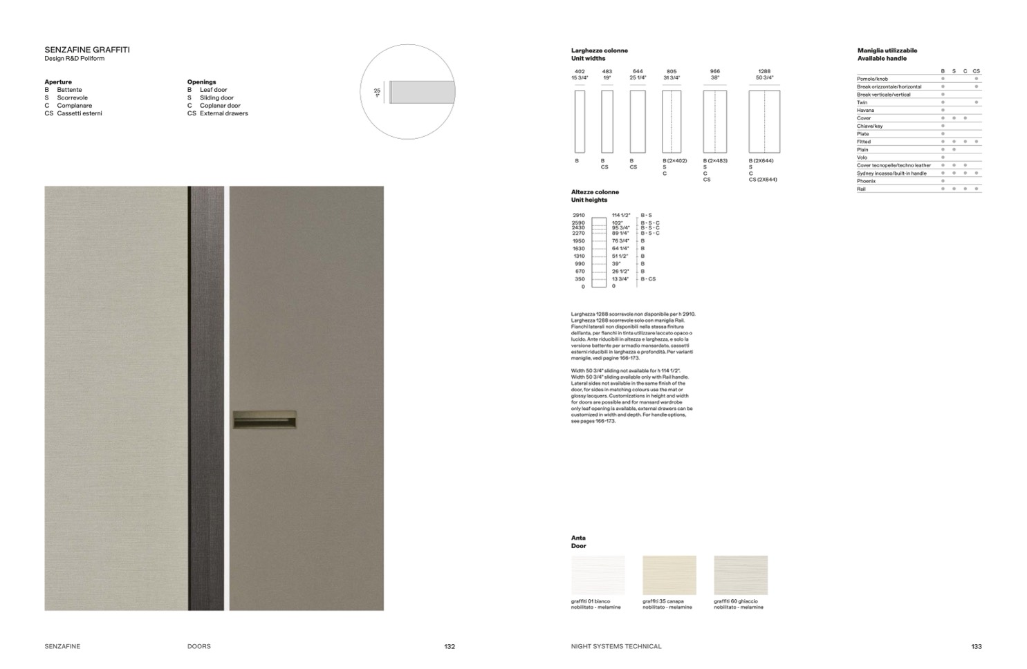 Larghezza 1288 scorrevole solo con maniglia Rail.