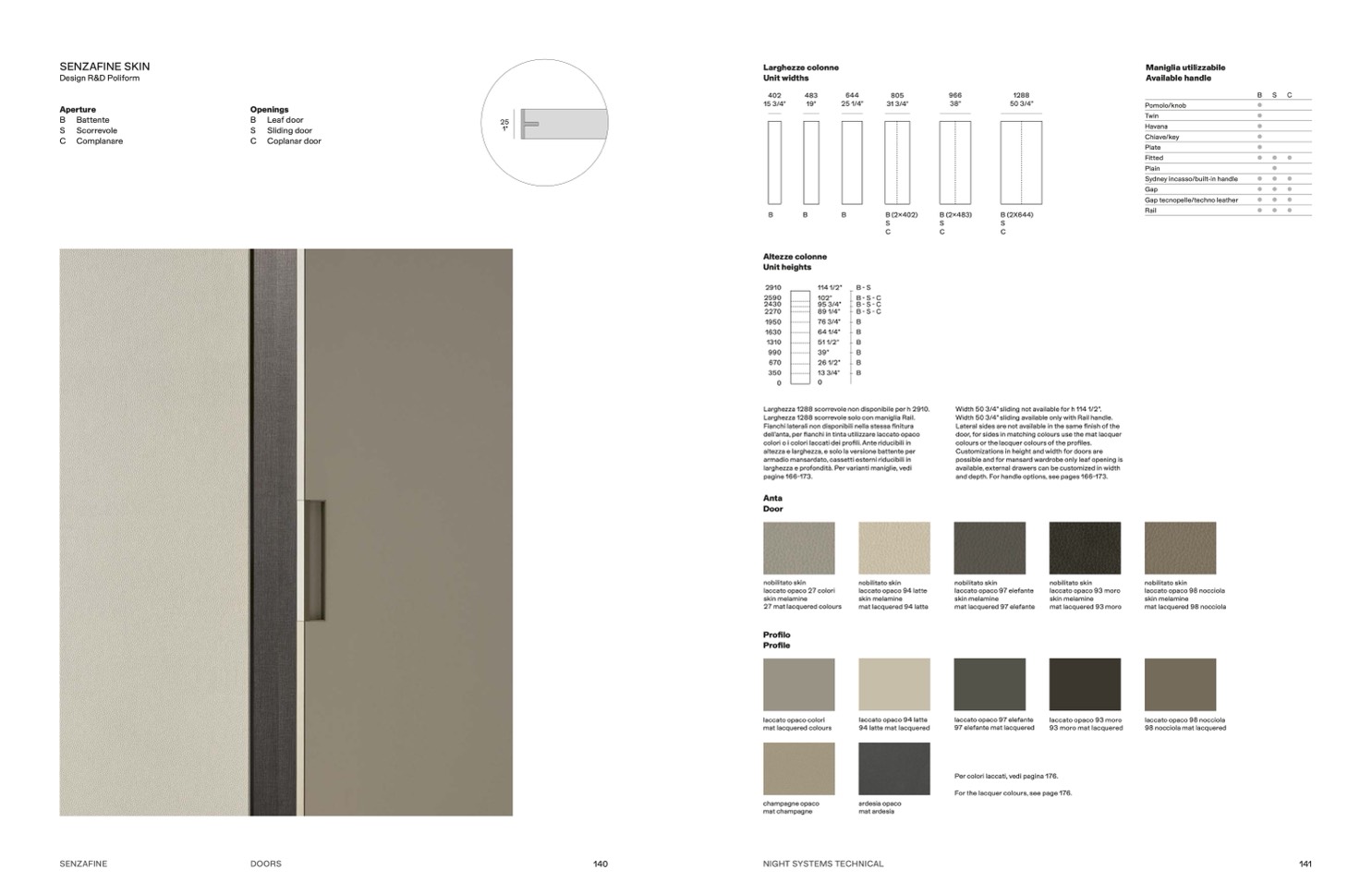 larghezza e profondità. Per varianti maniglie, vedi