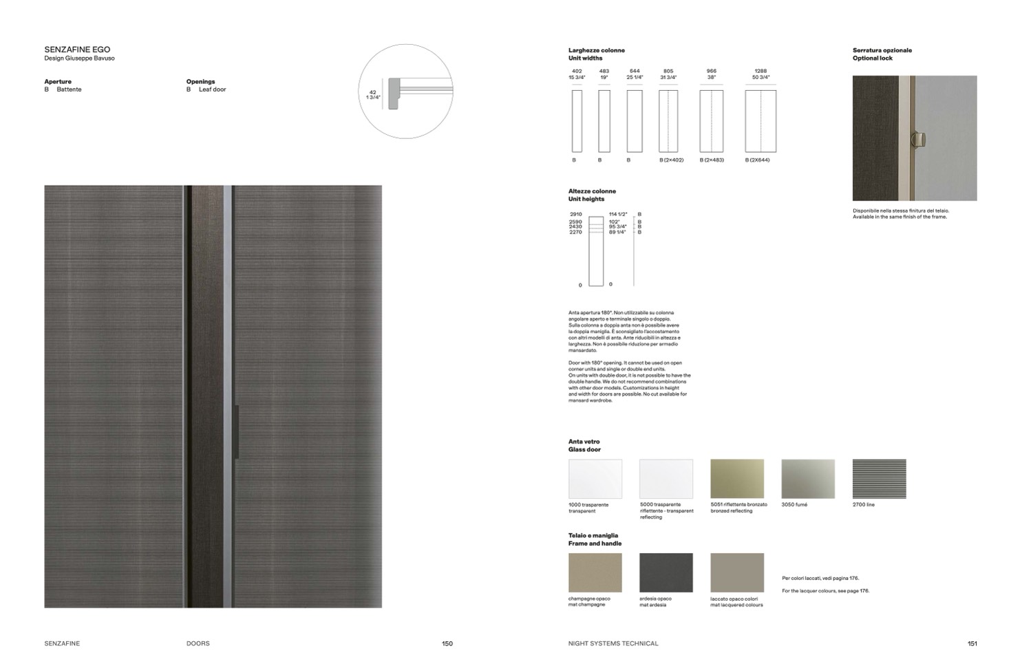Anta apertura 180°. Non utilizzabile su colonna