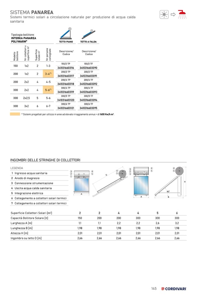 Sistemi progettati per utilizzo in aree ad elevato irraggiamento annuo > di 1600 Kw/h m
