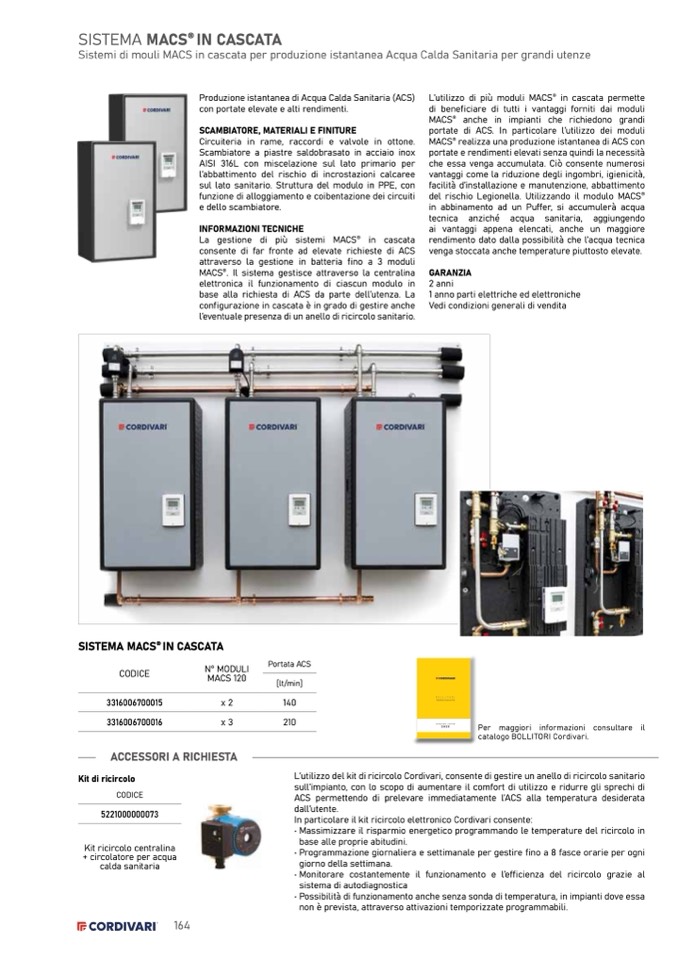L’utilizzo del kit di ricircolo Cordivari, consente di gestire un anello di ricircolo sanitario