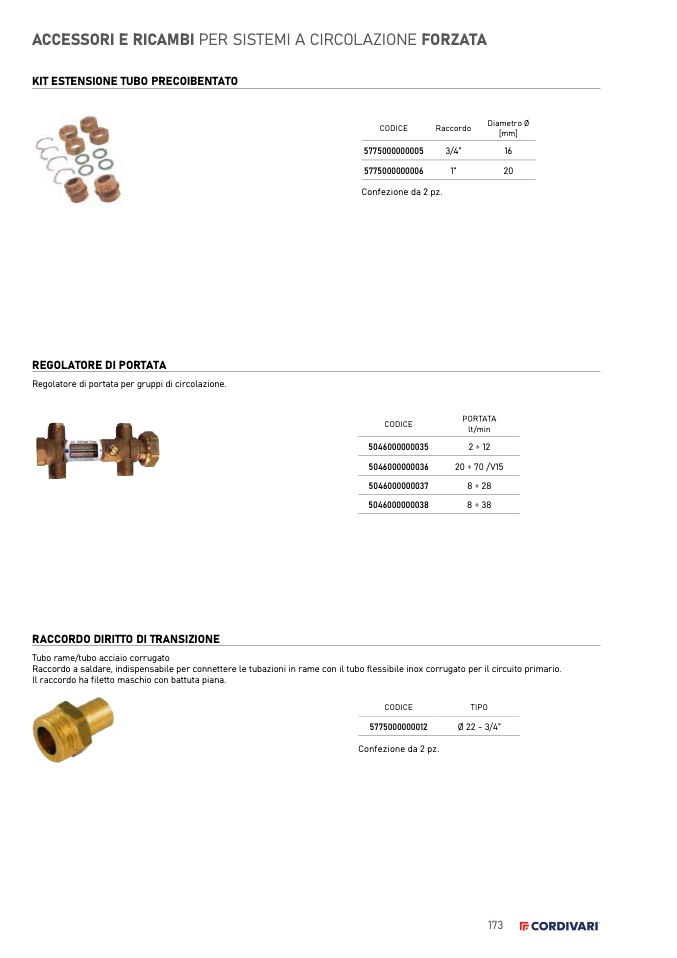 Raccordo a saldare, indispensabile per connettere le tubazioni in rame con il tubo flessibile inox corrugato per il circuito primario.