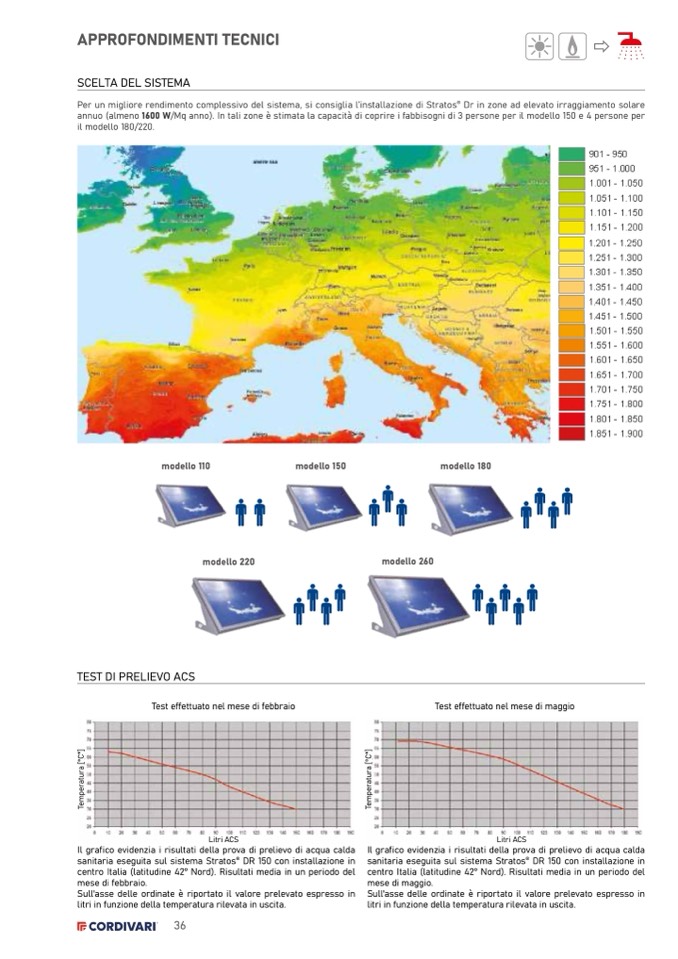 annuo (almeno 1600 W/Mq anno). In tali zone è stimata la capacità di coprire i fabbisogni di 3 persone per il modello 150 e 4 persone per
