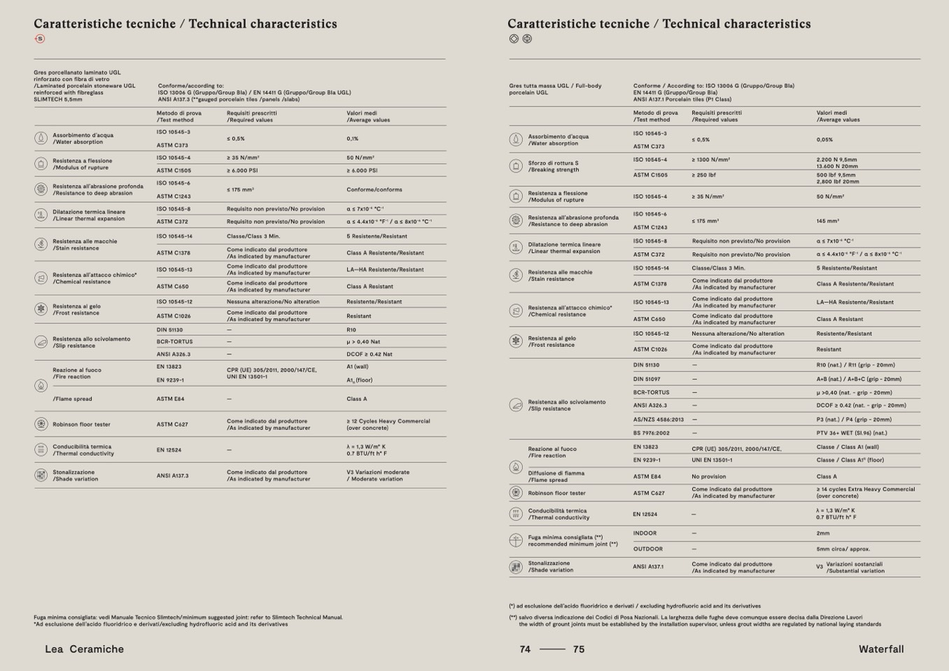 Conforme / According to: ISO 13006 G (Gruppo/Group BIa)