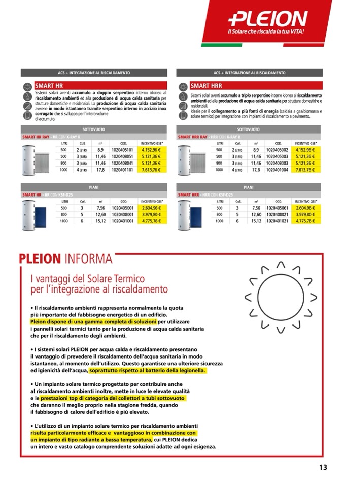 • I sistemi solari PLEION per acqua calda e riscaldamento presentano