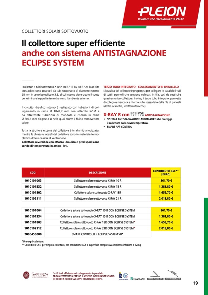 Collettore solare sottovuoto X-RAY 18R CON ECLIPSE SYSTEM*