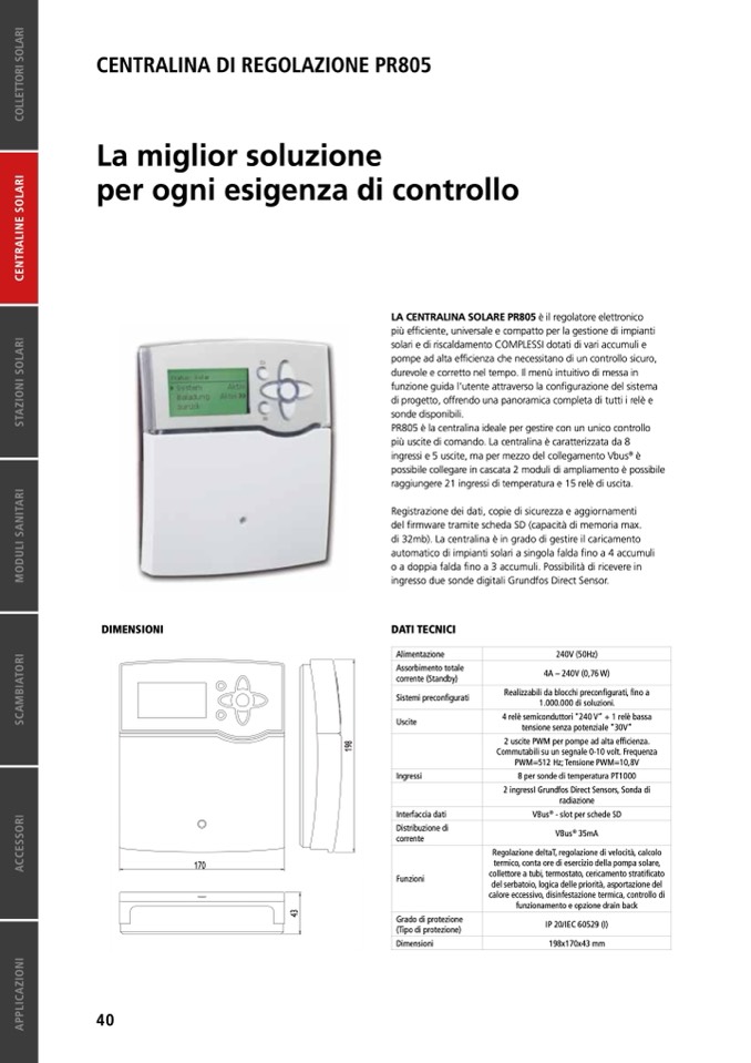 Ingressi: 5 sonde temperatura Pt1000, 1 ingresso