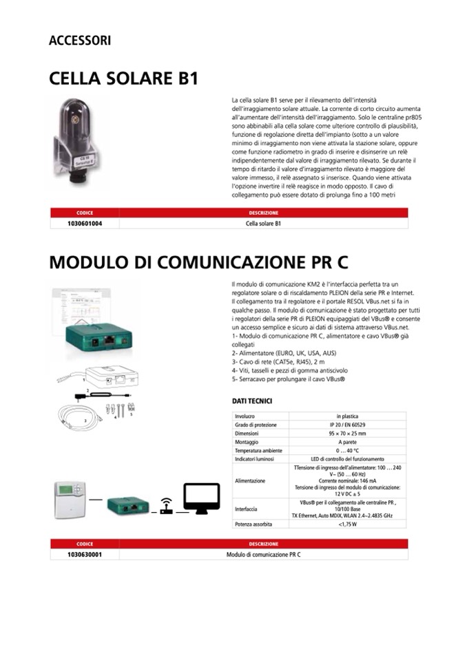 1- Modulo di comunicazione PR C, alimentatore e cavo VBus® già