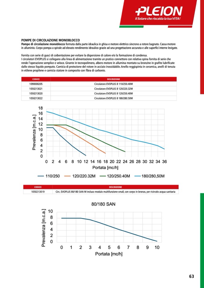 Pompe di circolazione monoblocco formata dalla parte idraulica in ghisa e motore elettrico sincrono a rotore bagnato. Cassa motore