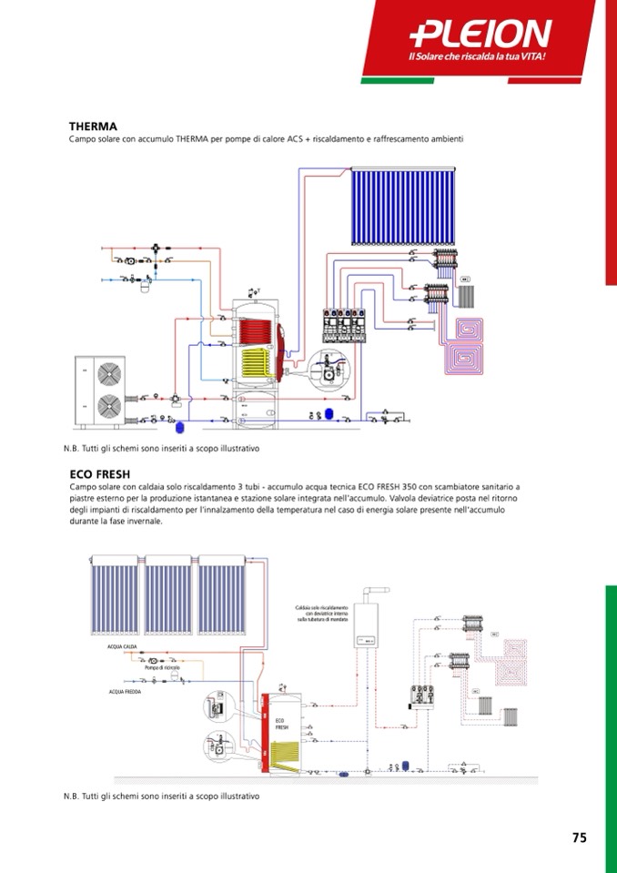 Campo solare con accumulo THERMA per pompe di calore ACS + riscaldamento e raffrescamento ambienti
