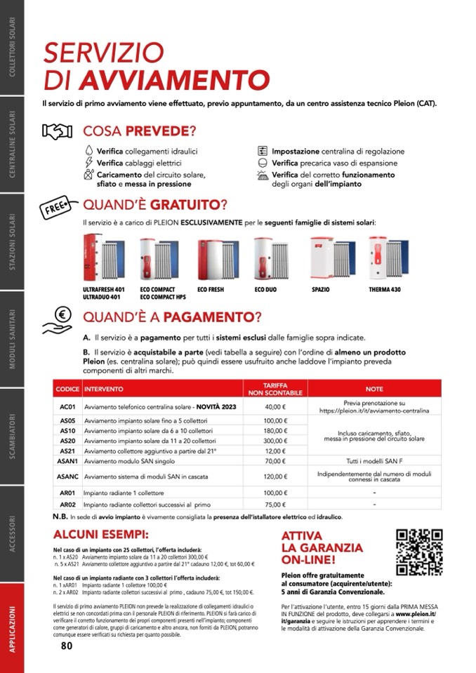 è a carico di PLEION ESCLUSIVAMENTE per le seguenti famiglie di sistemi solari: