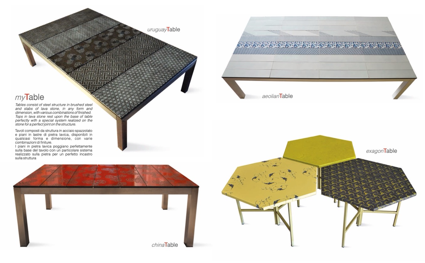 Tops in lava stone rest upon the base of table