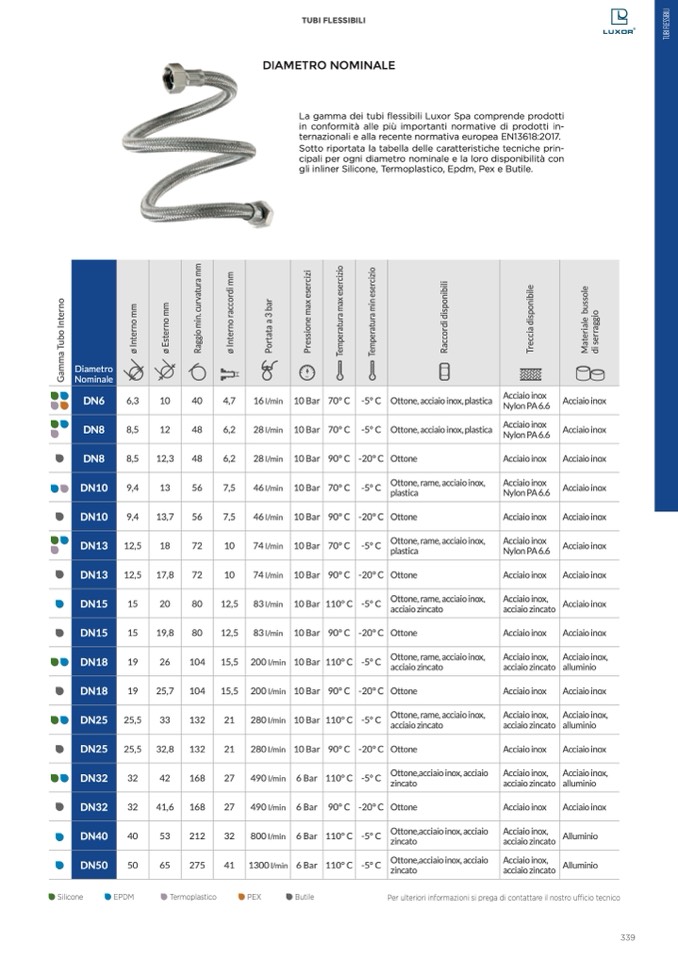 La gamma dei tubi flessibili Luxor Spa comprende prodotti