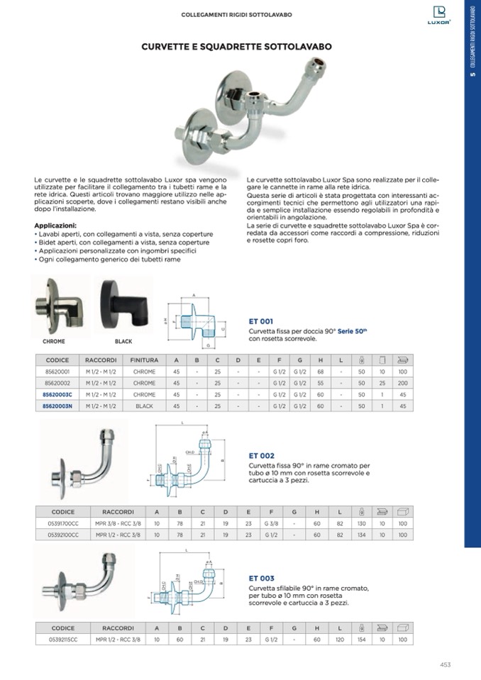 La serie di curvette e squadrette sottolavabo Luxor Spa