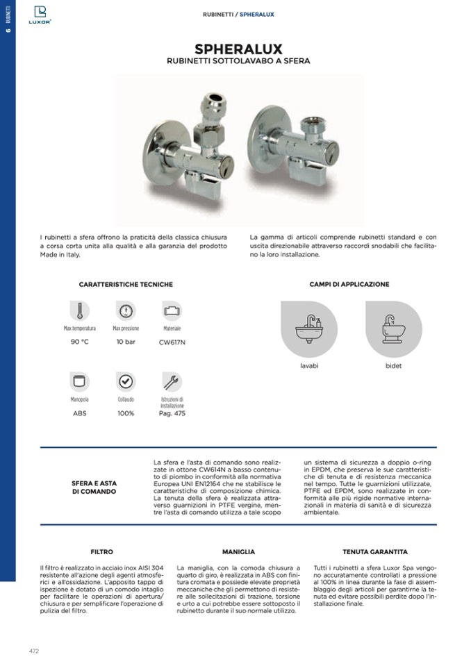 Tutti i rubinetti a sfera Luxor Spa vengo-