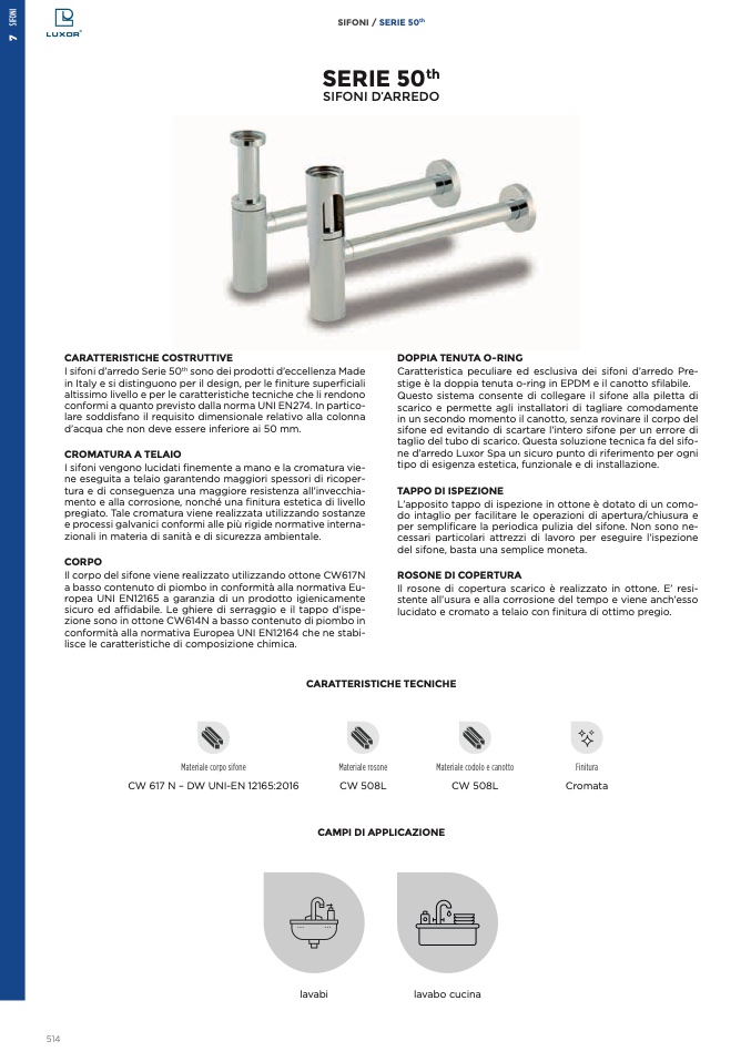 Il corpo del sifone viene realizzato utilizzando ottone CW617N