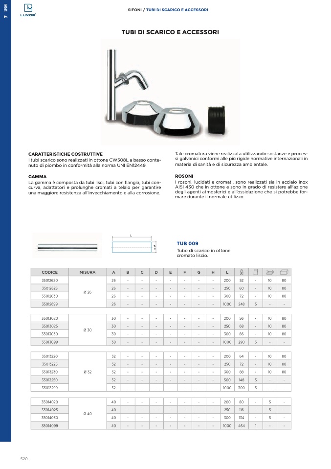 SIFONI / TUBI DI SCARICO E ACCESSORI