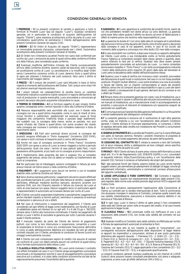 8 GARANZIA - 8.1 Luxor garantisce la conformit