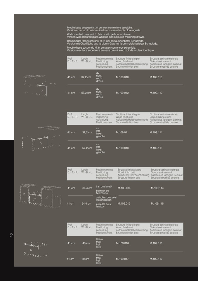 Mobile base sospeso h. 34 cm con contenitore estraibile.