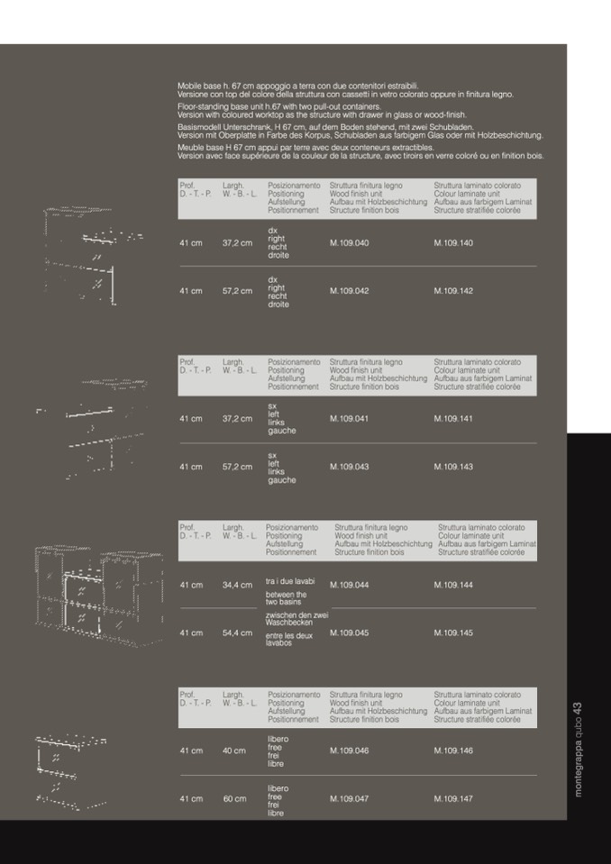 Version with coloured worktop as the structure with drawer in glass or wood-finish.