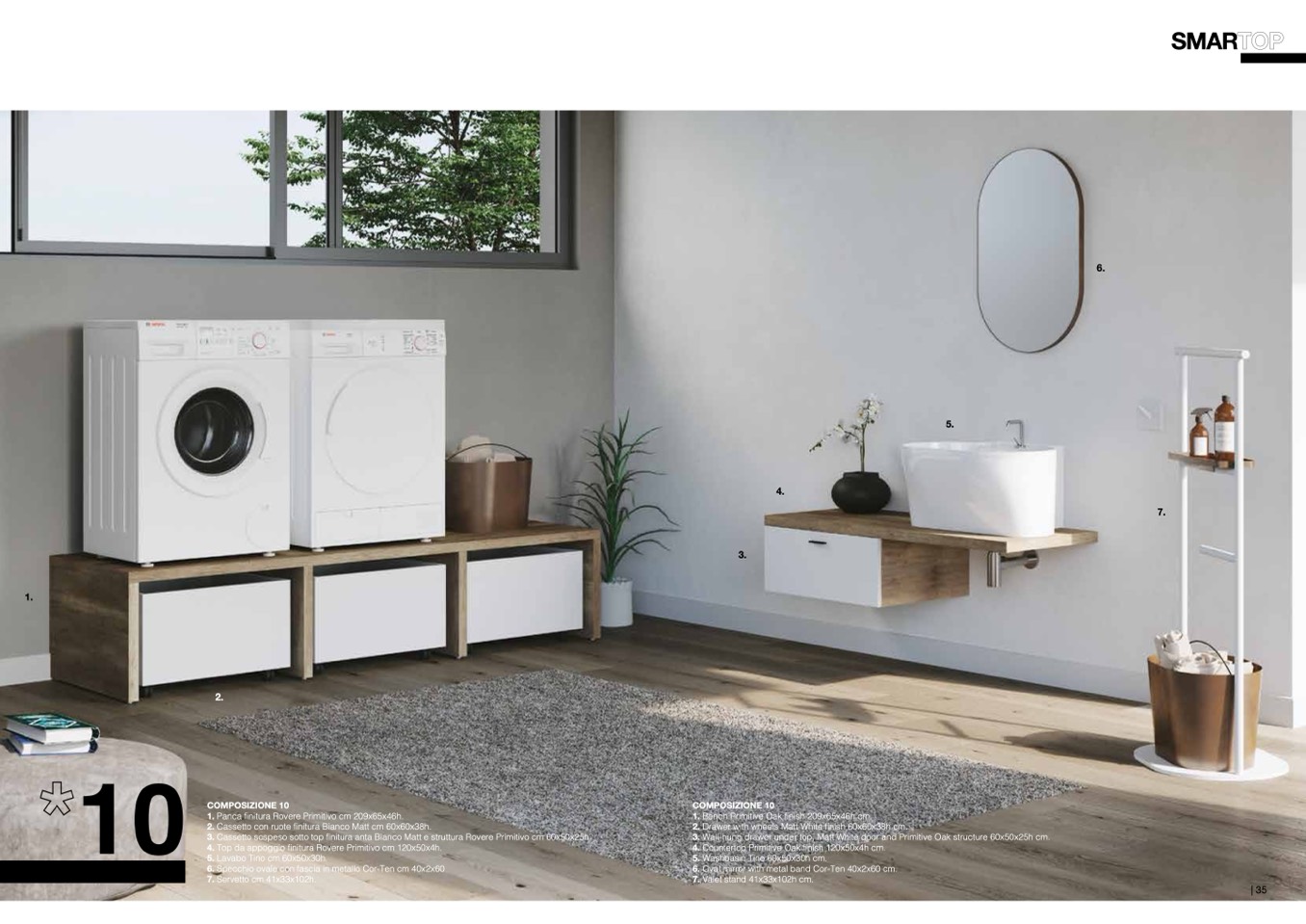 4. Top da appoggio finitura Rovere Primitivo cm 120x50x4h.