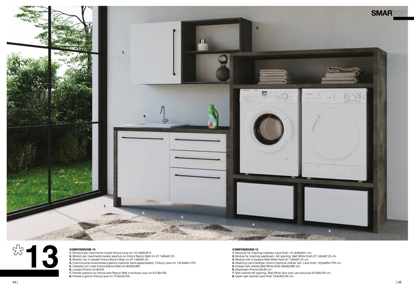 4. Washing machine/dryer column (optional clothes rail). Lava finish 145,6x65x170h cm.