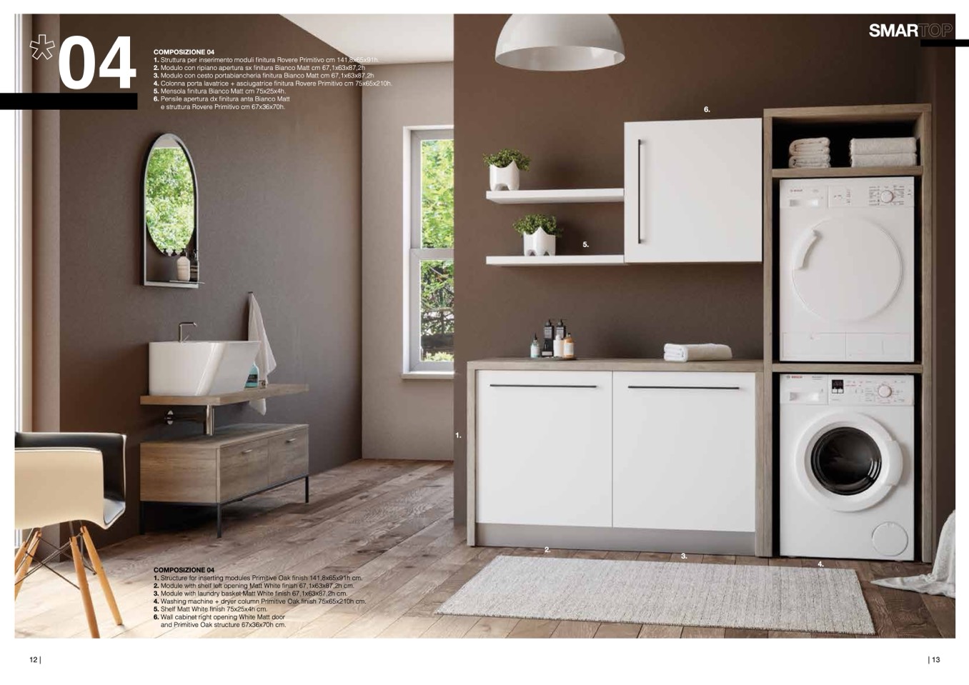 4. Washing machine + dryer column Primitive Oak finish 75x65x210h cm.