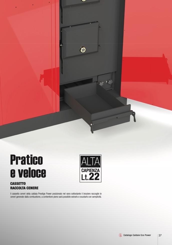 Il cassetto ceneri della caldaia Prestige Power posizionato nel vano sottostante il braciere raccoglie le