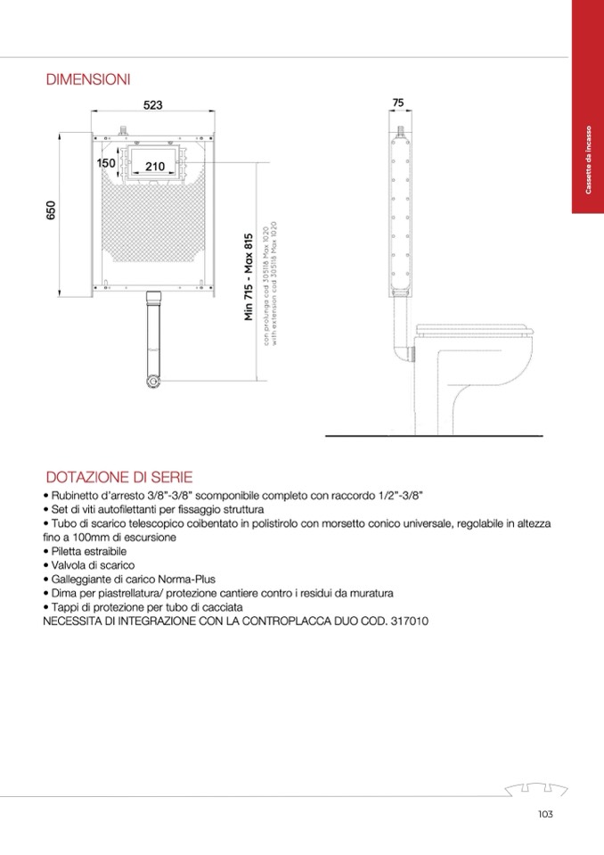 NECESSITA DI INTEGRAZIONE CON LA CONTROPLACCA DUO COD. 317010