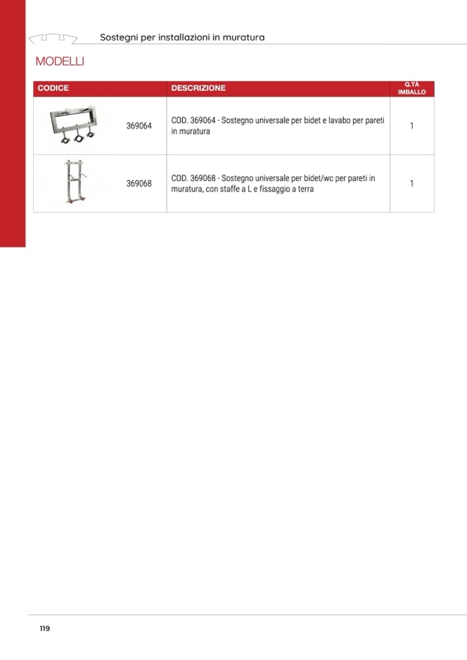 COD. 369064 - Sostegno universale per bidet e lavabo per pareti