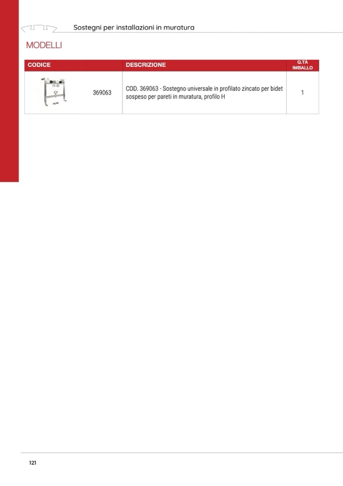 COD. 369063 - Sostegno universale in profilato zincato per bidet