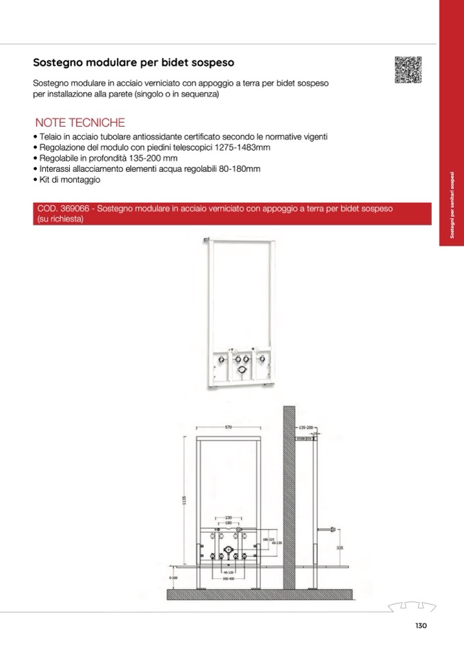 COD. 369066 - Sostegno modulare in acciaio verniciato con appoggio a terra per bidet sospeso