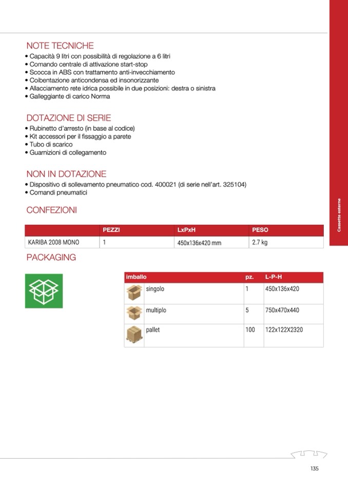 • Capacità 9 litri con possibilità di regolazione a 6 litri