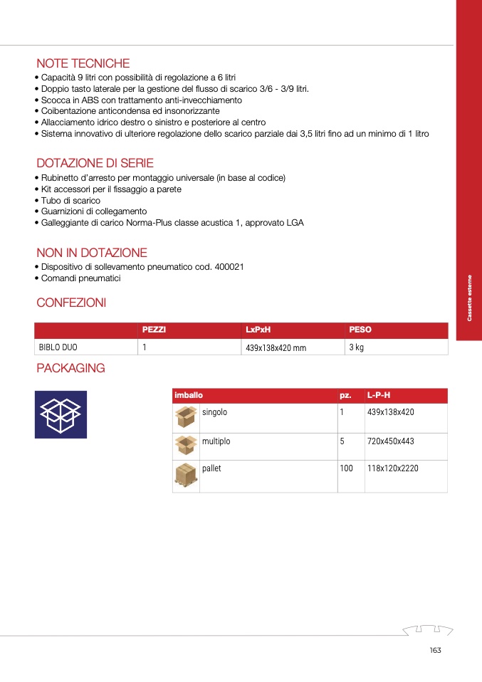 • Doppio tasto laterale per la gestione del flusso di scarico 3/6 - 3/9 litri.