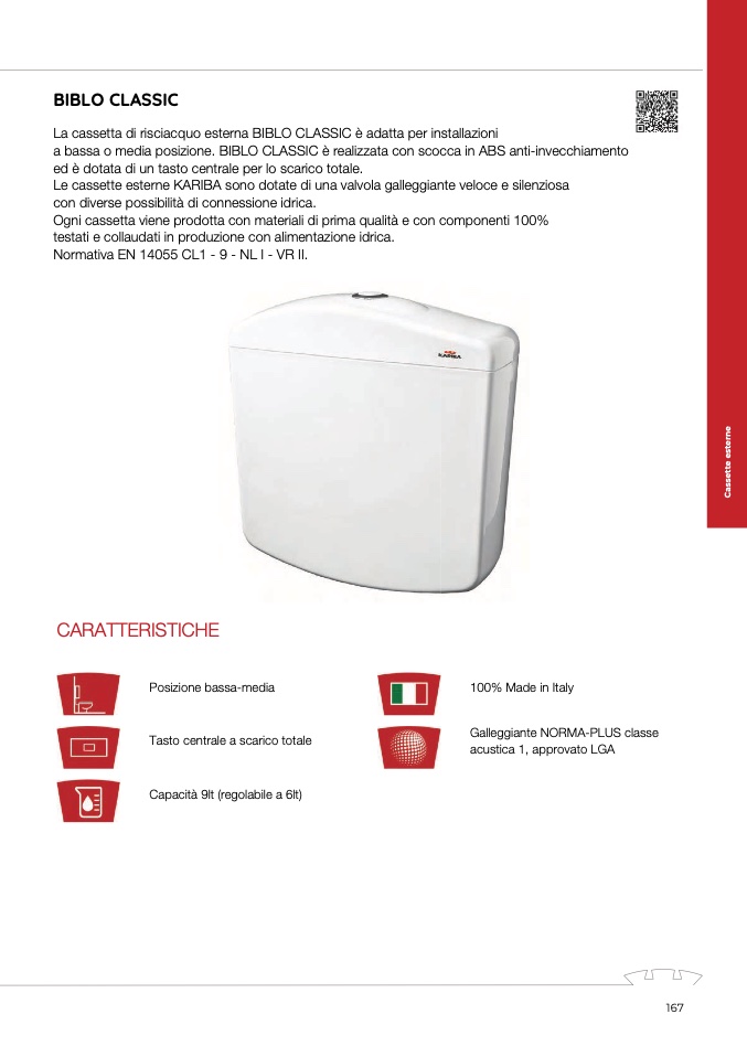Le cassette esterne KARIBA sono dotate di una valvola galleggiante veloce e silenziosa