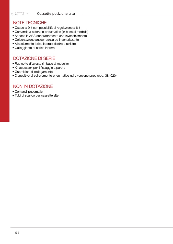 • Capacità 9 lt con possibilità di regolazione a 6 lt