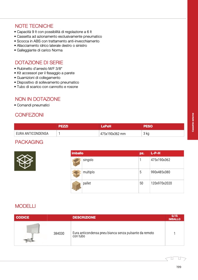 • Capacità 9 lt con possibilità di regolazione a 6 lt