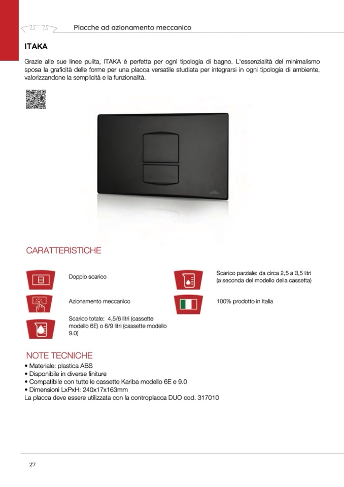 • Compatibile con tutte le cassette Kariba modello 6E e 9.0
