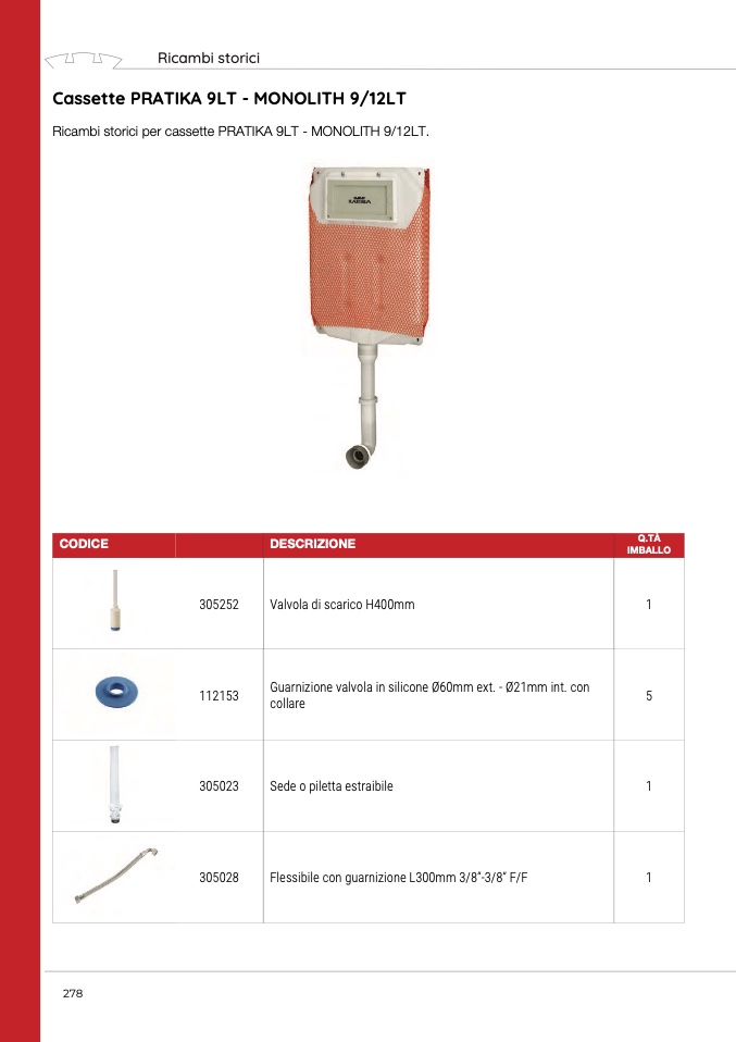 Ricambi storici per cassette PRATIKA 9LT - MONOLITH 9/12LT.