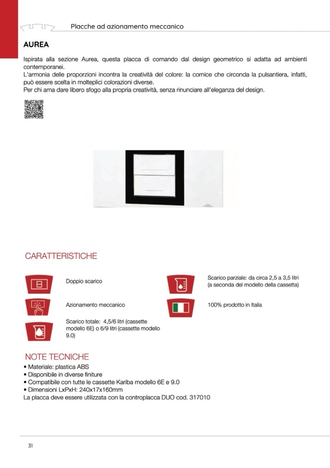 La placca deve essere utilizzata con la controplacca DUO cod. 317010