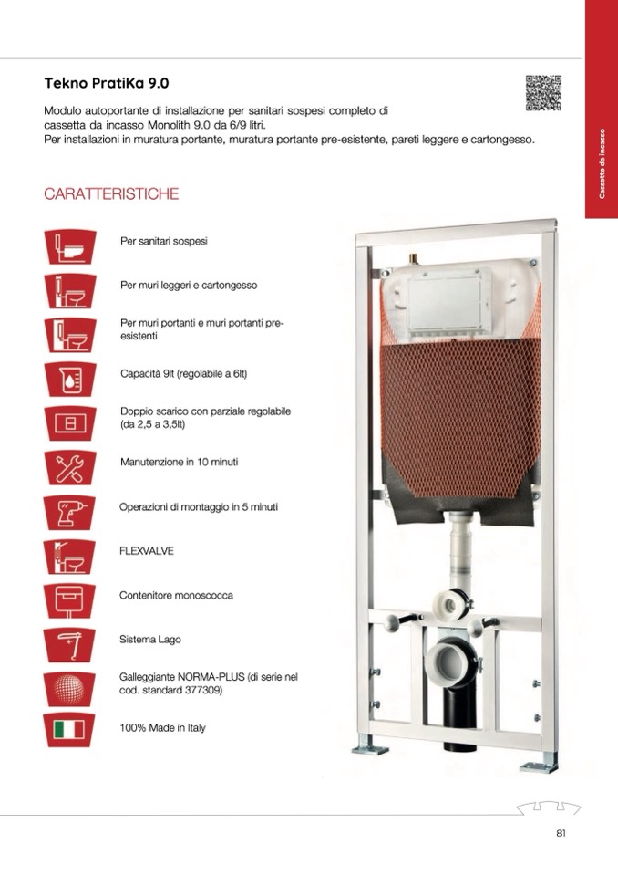 cassetta da incasso Monolith 9.0 da 6/9 litri.