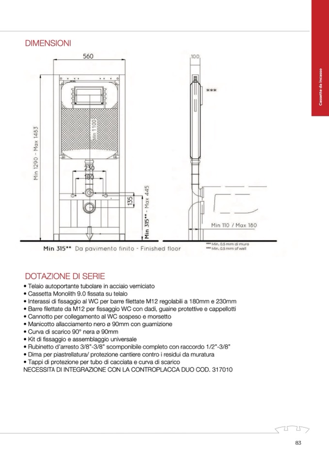 NECESSIT� DI INTEGRAZIONE CON LA CONTROPLACCA DUO COD. 317010