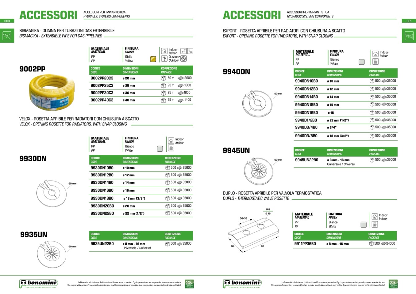 La Bonomini srl si riserva il diritto di modificare senza preavviso. Ogni riproduzione, anche parziale, è severamente vietata